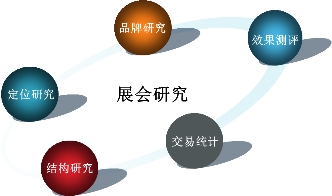 展會研究主要包括展會定位研究、展會結(jié)構(gòu)研究、展會品牌研究、展會效果研究(參展商及專業(yè)觀眾滿意度評估)、展會觀眾及交易量統(tǒng)計、展會人流量監(jiān)測等研究內(nèi)容。通過對展會的一系列研究: