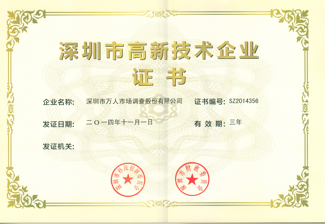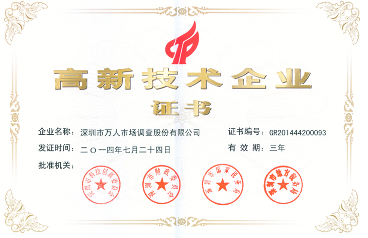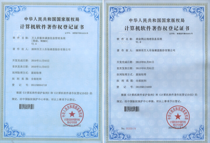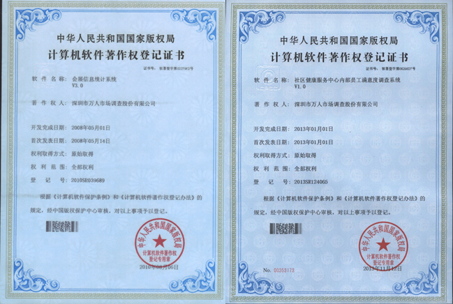 自2003年以來我們先后獲得了軟件企業(yè)、軟件行業(yè)協(xié)會(huì)會(huì)員、深圳市高新技術(shù)企業(yè)等資質(zhì),積累了豐富的軟件研發(fā)經(jīng)驗(yàn),研發(fā)了多套自用軟件,獲得兩項(xiàng)軟件產(chǎn)品“萬人智能語言互動(dòng)平臺(tái)WR-LIIS”,“萬人醫(yī)院?jiǎn)T工滿意度管理系統(tǒng)”和7項(xiàng)擁有獨(dú)立自有知識(shí)產(chǎn)權(quán)的軟件著作權(quán)(“文博會(huì)統(tǒng)計(jì)平臺(tái)”、“商業(yè)網(wǎng)點(diǎn)調(diào)查系統(tǒng)”,“萬人多媒體調(diào)查信息管理系統(tǒng)”,“醫(yī)德醫(yī)風(fēng)管理系統(tǒng)”,“萬人多媒體調(diào)查信息管理系統(tǒng)”),這些應(yīng)用軟件在為公司的調(diào)研咨詢業(yè)務(wù)提供了有效的支持同時(shí),也讓公司在復(fù)雜的數(shù)據(jù)統(tǒng)計(jì)與挖掘技術(shù)應(yīng)用和數(shù)據(jù)模型體系的應(yīng)有高新技術(shù)方面在本行業(yè)中處于領(lǐng)先地位。