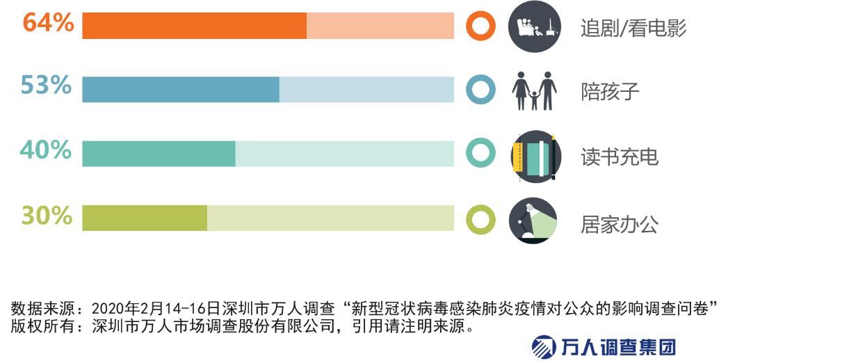 隨著春節(jié)假期延長(zhǎng)至2月2日,全國(guó)大部分省份復(fù)工時(shí)間推遲至2月10日,市民居家隔離時(shí)間至少超過(guò)16天,期間市民宅家的主要休閑方式如何?