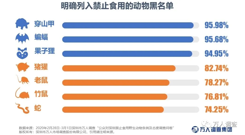 2超過90%的公眾支持將穿山甲、蝙蝠和果子貍明確列入“黑名單”