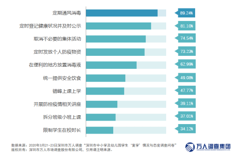 1.通風(fēng)消毒,健康狀況公示,不搞集體活動,提供防疫物資是家長最為重視的四項復(fù)學(xué)防疫措施