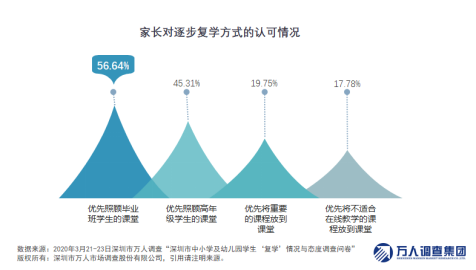 2.多數(shù)家長認為有必要采取逐步復(fù)學(xué)的方法,優(yōu)先讓畢業(yè)班學(xué)生復(fù)學(xué)的觀點最受認可