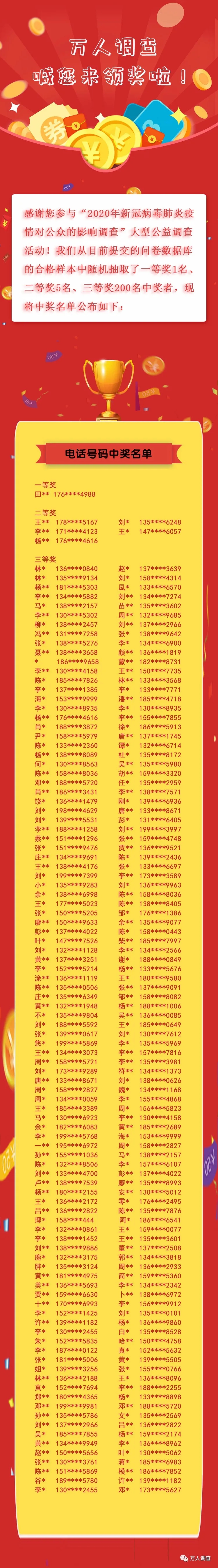 現(xiàn)在我們就來(lái)公布中獎(jiǎng)信息了~本次抽獎(jiǎng)活動(dòng)秉承公開(kāi)公平公正的原則,從參與調(diào)查的17708名公眾中由系統(tǒng)隨機(jī)抽出。