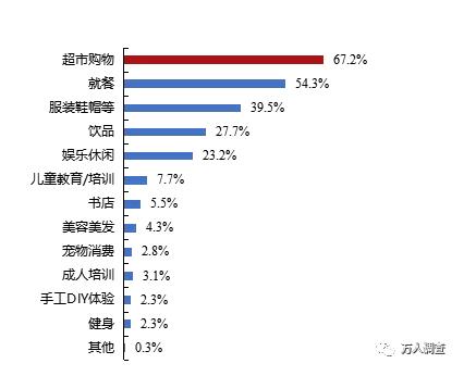 根據(jù)調查結果顯示,2020年深圳市民去商場的消費排名前三的品類為超市購物(67.2%)、就餐(54.3%)、服裝鞋帽等(39.5%),值得注意的是飲品消費占比今年有很大提高。