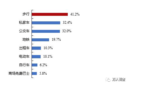與2018年相同,2020年深圳市民仍主要采取步行的方式前往經(jīng)常光顧的商場,占比超過四成,遠超過其他交通方式。