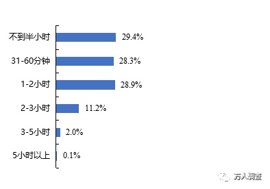 深圳居民購物單程時間主要集中在11-20分鐘(40.9%),總體來說,5-30分鐘的路程時間占比達85.10%。