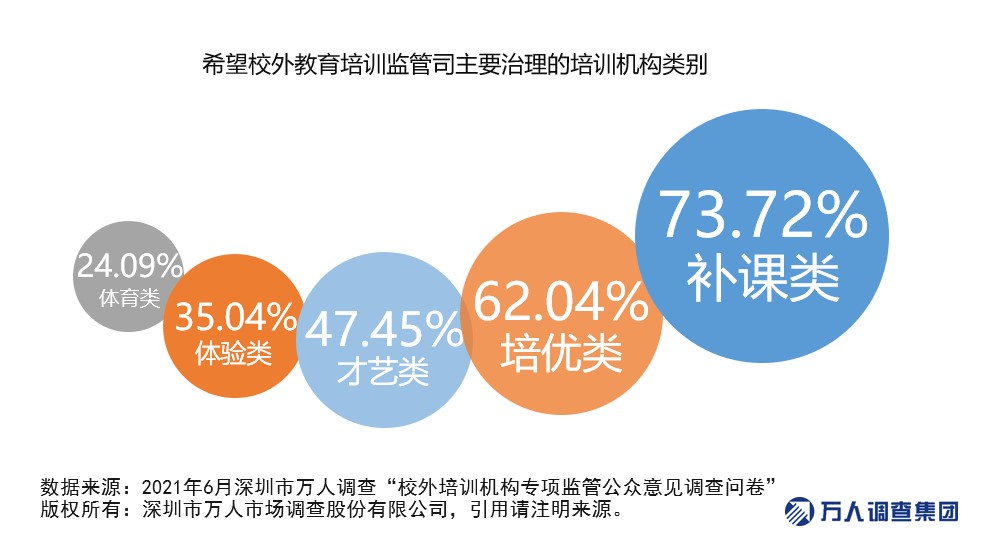 從今年年初開始,多家在線教育機構(gòu)開始著手更名,淡化“AI”等學(xué)科類名稱,轉(zhuǎn)而向“國學(xué)”“啟蒙”等靠攏,推起了“去培訓(xùn)化”的轉(zhuǎn)型高潮。在本次調(diào)查中,有81.75%的市民認(rèn)為線上線下培訓(xùn)機構(gòu)都要重點監(jiān)管,尤其是補課類和培優(yōu)類的培訓(xùn)機構(gòu),希望通過監(jiān)管保證機構(gòu)的合理規(guī)范運行?!?/p>